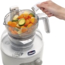 Смилането на продуктите се извършва с помощта на бобови растения, което ви позволява да избирате консистенцията на продуктите, получени на изхода, според възрастта на бебето, независимо дали става дума за хомогенно пюре, настъргана храна или малки парченца. Времето за готвене е 15 минути. Първо парчетата трябва да се приготвят в решетка за пара, след това се изсипват в чаша с чопър и се пасират.