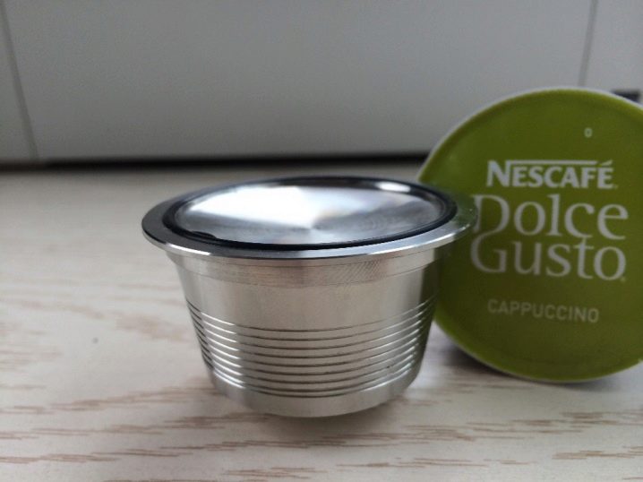 - Комбинирани контейнери. Някои от вътрешната им подплата включват пластмаса, което влияе върху безопасността на употреба и вкуса на продукта. Този недостатък обаче лесно се покрива от цената им. Полимерните капсули се състоят от най -добрите суровини, една от които са хранителни полимери. Рисковете от използването на този тип контейнери са минимални, според резултатите от теста, те нямат никакъв вреден ефект, което от своя страна е причина за повишената цена за този тип капсули. Има и контейнери за многократна употреба, които могат да се използват средно 100 пъти. Състоят се от неръждаема стомана, пластмаса, а контейнерът е с гумен капак. Оригиналните капсули на Dolce Gusto струват около 200 рубли.