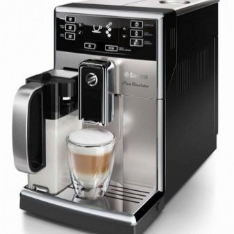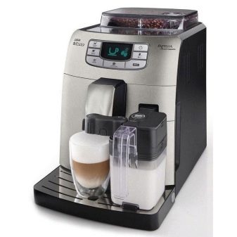 Saeco HD 8745 – това е една от най -компактните кафе машини на пазара днес. В същото време производителите са го оборудвали с мощна функционалност, която може да се намери само в скъпи устройства. Структурата включва автоматична кафемелачка. Системата приготвя кафе при налягане от 15 бара. Има и възможност за регулиране на количеството напитка, както и промяна на степента на смилане на боба. Резервоарът за вода ви позволява да приготвите до 8 кафета, без да зареждате отново. Предимствата на този модел включват високото качество на напитката, наличието на функции за автоматично изключване и изплакване. Трябва също да се отбележи, че кафе машината разпенва много добре млякото, което се отразява на вкусовите характеристики на капучино..