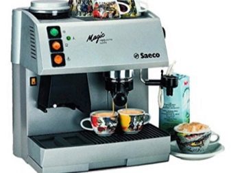 Кафе машина Saeco има висок рейтинг – приготвя висококачествено и силно кафе, перфектно се пени и има дълъг експлоатационен живот. Лесно е да използвате оборудването на италианската марка – просто заредете смляното кафе в клаксона и превключете лоста в работен режим. Разбиването на пяната също не е много трудно – просто потопете машината за капучино в съд с мляко.