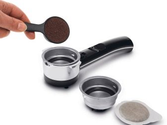 - Те работа със смляно кафе или прах, пресовани в “таблетки” – шушулки.