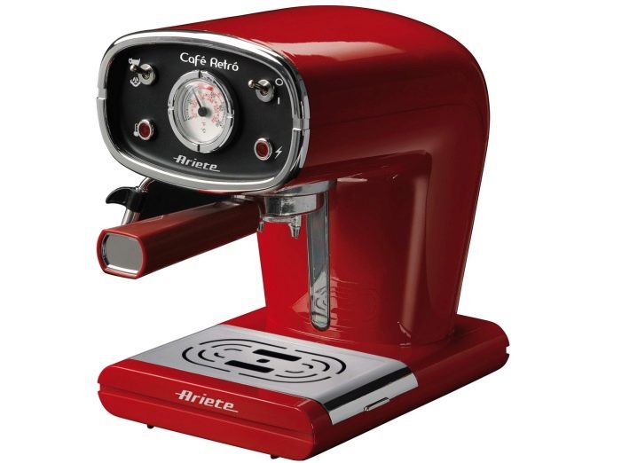 - Ариете. Тези устройства струват няколко пъти повече от устройствата, произведени от някои други компании. Дизайнът на кафеварките е стилен и оригинален. Тип устройство – действие с помпа. Много устройства имат вградена мелница, така че можете да използвате цели зърна за приготвяне на напитки. Това са много мощни устройства, които практически нямат недостатъци. Те включват само пластмасовия корпус..
