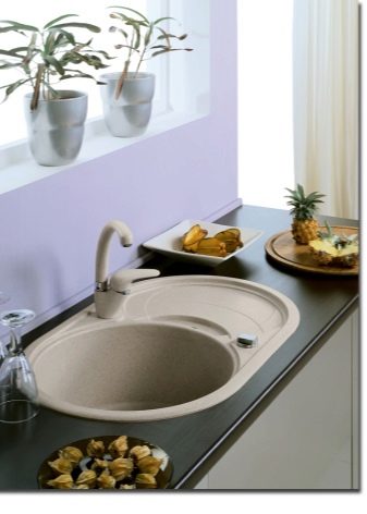Акрилният камък ще струва малко по -малко. Черупка, изработена от такъв материал, може да бъде с всякаква форма. И благодарение на шлайфането, преходът от мивка към работен плот може да стане почти невидим. Въпреки това е много по-практично да поставите висококачествена гранитна мивка веднъж и да не се притеснявате за това..