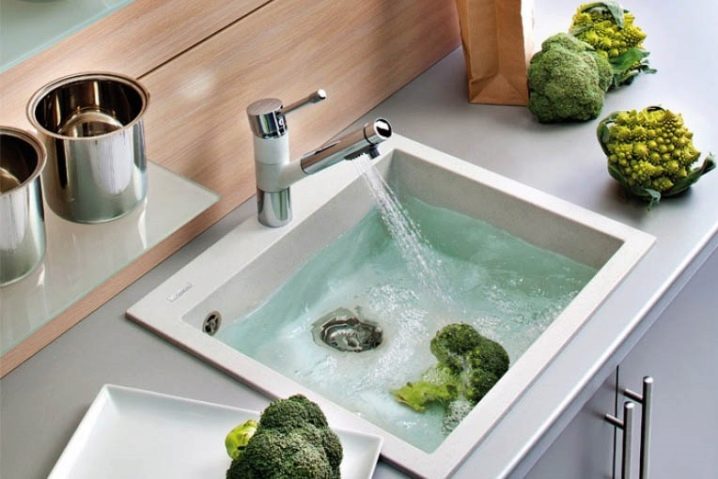 Кухненските мивки могат да бъдат с една купа, две или повече. Най -удобният и популярен вариант за семейство от три или повече е мивка, състояща се от две купи. Единият е предназначен за ястия, вторият е за измиване на зеленчуци или плодове, размразяване на месо с риба или слагане в гевгир.