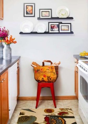 Рафтовете перфектно ще служат като такъв елемент. Те могат да бъдат изработени от различни материали, за да отговарят на цялостния стил на стаята. Дървените са чудесни за кънтри или прованс стил. Стъкло, метал или пластмаса – за кухня, направена в класически стил, хай -тек, минимализъм. Освен това те могат да бъдат направени със собствените ви ръце според вашите собствени скици и те ще придобият уникален вид..