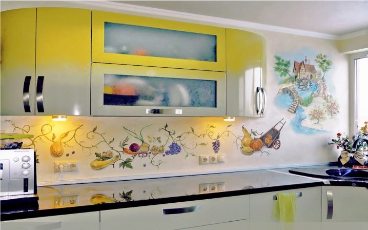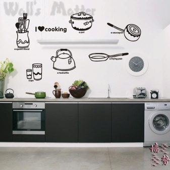 Красив дизайн в кухнята може да се направи не само с помощта на декорация на стени. Можете също така да украсите мебели. Всички видове стикери са идеални за това, можете сами да приложите оригиналната рисунка.