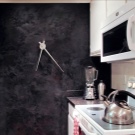 Интересно и оригинално ще изглежда кухнята, където за декорация се използват декоративни видове мазилка и естествен или изкуствен камък.