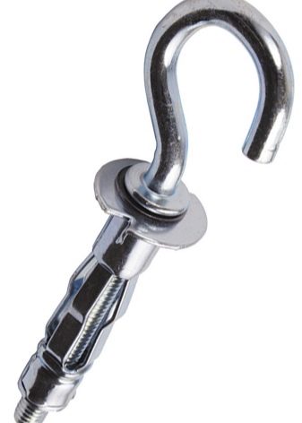 - Вариантът с използване на куки, завинтени в дюбелите, изглежда добре. Това ви позволява да използвате почти всички винтови глави, без да ги избирате специално за параметрите на пантите..