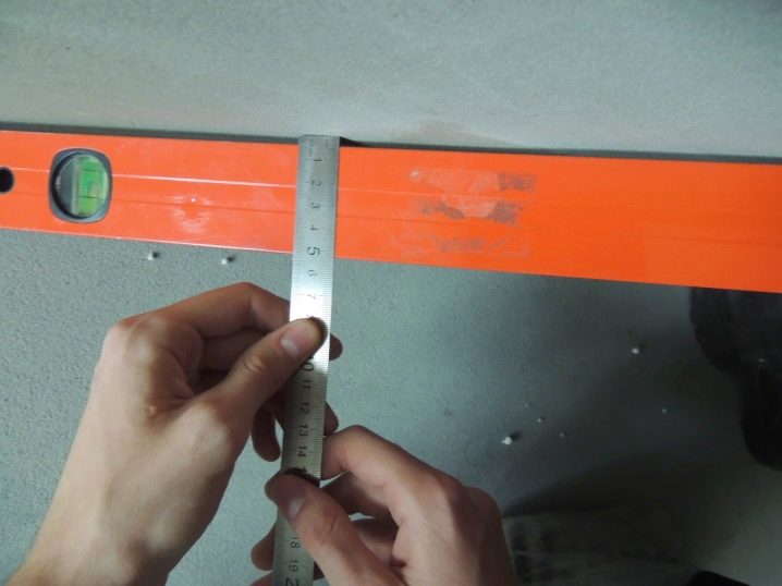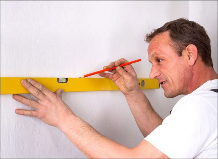 - Необходимо е да определите зоната, където ще окачите шкафа, и да начертаете хоризонтални линии по цялата бъдеща конструкция.