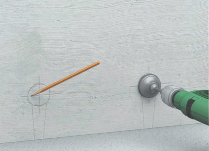 - При пробиване стената може да започне да се руши. За да избегнем това, първо работим с по -тънка бормашина, отворът от която по -късно може да се увеличи..