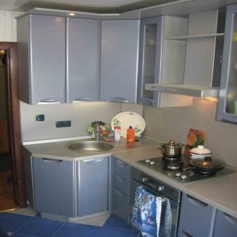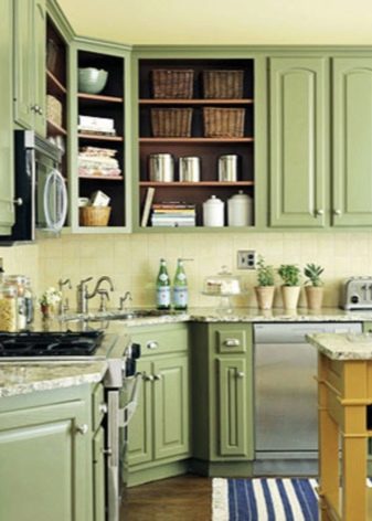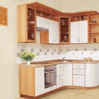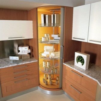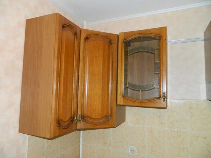 Закупуването на ъглов шкаф ще направи стаята много по -функционална. Това е много важно за малките кухни. Ъгловите модели се предлагат в различни модификации. Трябва да се има предвид, че горният и долният шкаф трябва да бъдат перфектно съчетани помежду си. Има ъглови шкафове с въртящ се механизъм. Те значително подобряват функционалността на кухнята и повишават общото ниво на ергономичност..