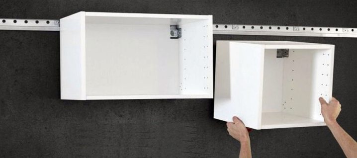 - Много е лесно и удобно да окачите няколко кухненски шкафа с помощта на монтажни релси, които имат регулируеми закачалки.