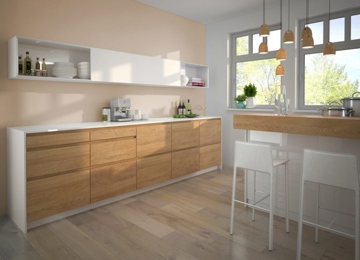 В същото време не трябва да забравяме, че кухненските шкафове трябва да бъдат разположени точно, тоест строго успоредно на нивото на подовите шкафове на кухненския комплект.