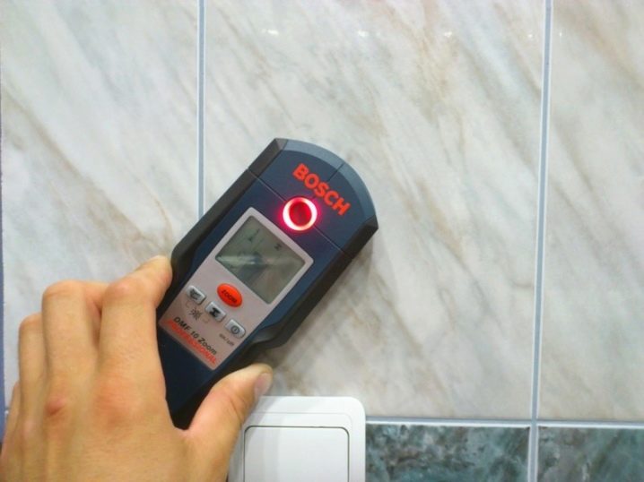 - Преди да пробиете стената, трябва да установите липсата (или наличието) на скрити електрически кабели.