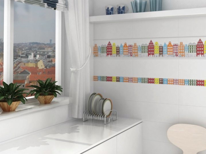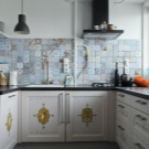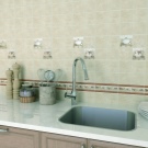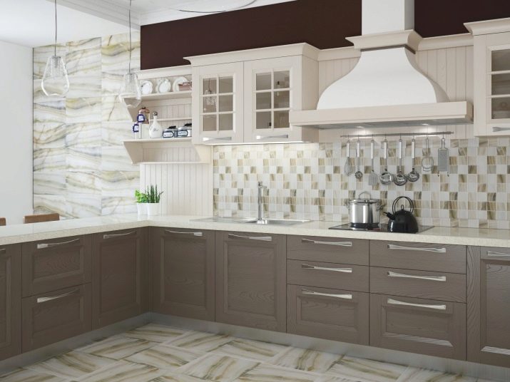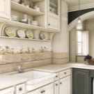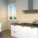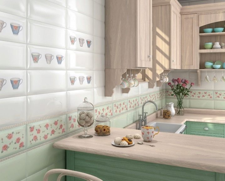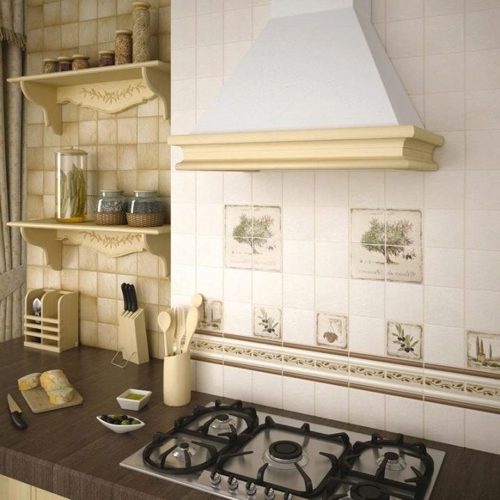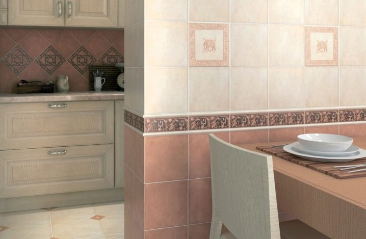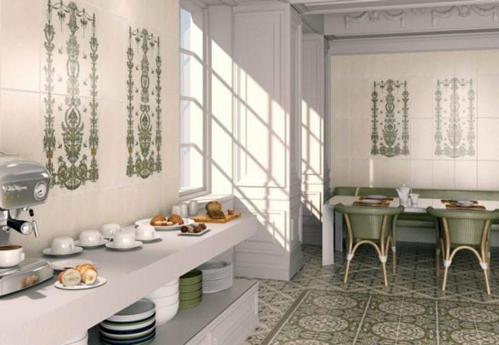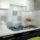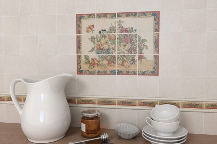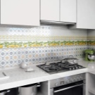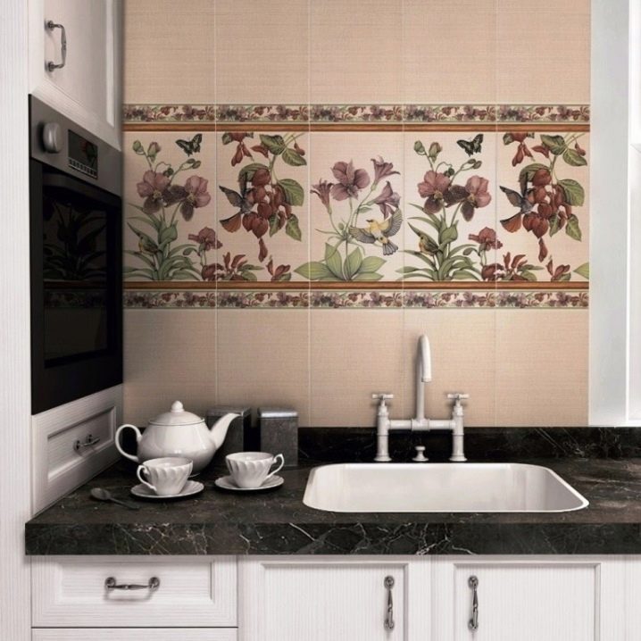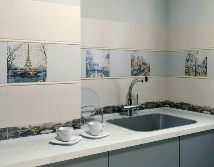 Всички серии са подбрани по такъв начин, че можете да сглобите свой собствен дизайн. Ако това е обикновена плочка, тогава почти винаги има подходящ аналог с щампа. Можете да изберете рамка за тях в комплекта. Всеки екземпляр на колекция има различен размер. И за да изглежда кухнята като цяло, можете да поставите порцеланови каменни изделия от същата серия на пода като плочките на стената..