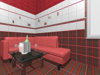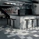 Големи плочки с матова повърхност. Преобладаващите цветове са бежово, сиво, червено. Създава атмосфера на мир и спокойствие.