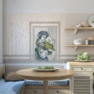 Деликатни пастели, смесени с ярък цветен декор. Основният цвят е сив, разреден с нюанси на бяло, бледо розово, бежово и други цветове на спокойни нюанси.
