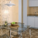 - за малка кухня е по -добре да изберете лъскави плочки от светли цветове, визуално разширявайки пространството