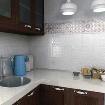 Освен това, когато купувате набор от маркови продукти, ще получите не само керамични квадратчета, но цяла хармонична серия, включително основни плочки, декор, бордюри и други елементи. Благодарение на това можете да създадете истинска стилна композиция във вашата кухня..