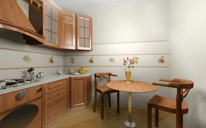 - също за малки помещения се препоръчва декорация на стени с малка керамика, защото продуктите с голям формат на стената на миниатюрна кухня ще създадат усещане за теснота