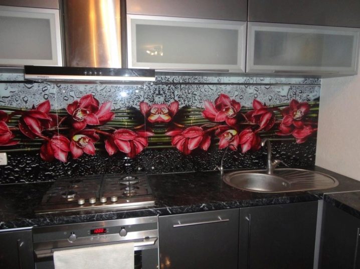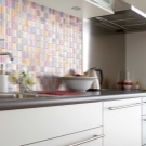 Стъклените плочки са изработени от минерално стъкло, те могат да бъдат прозрачни, полупрозрачни, цветни, матови и лъскави. Поради гладката си повърхност, той се почиства лесно, обикновено се използват почистващи препарати за прозорци. Може да се използва за декориране на отделни фрагменти от стена или престилка, съчетавайки се с обичайната кармична. След това в кухнята се създава специално оцветяване на стените, което искри и блести..