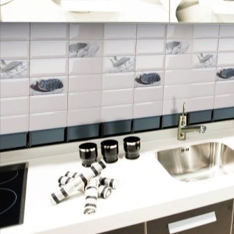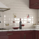 Белите плочки са универсални за кухни с почти всеки цветен дизайн. Подходящ е за всякакви мебели, създава комфорт при работа и внася повече светлина в стаята. Можете да използвате винилови стикери за него, които след това лесно се премахват или сменят.
