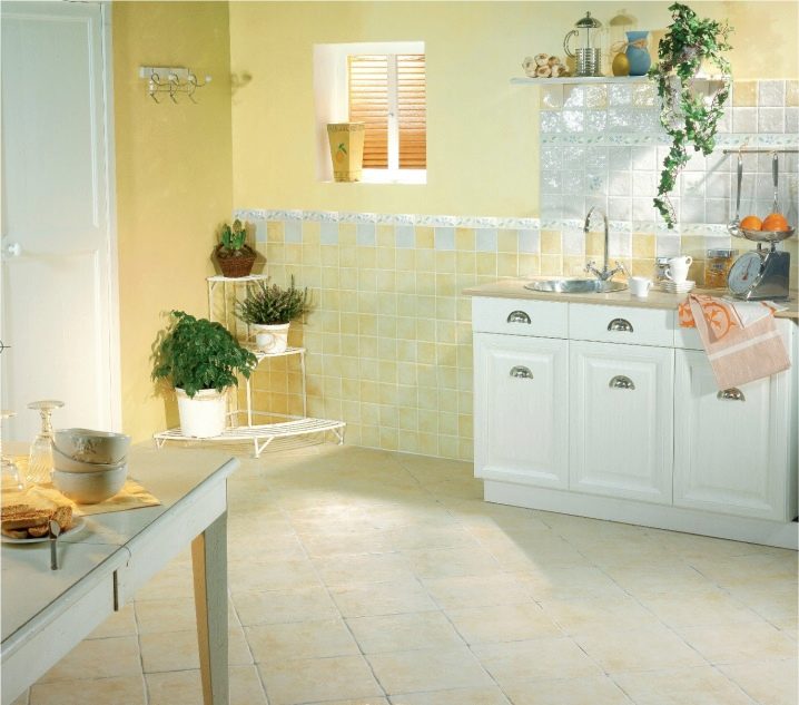 Простото полагане на плочки в кухнята в стил Прованс винаги е свежо и актуално.