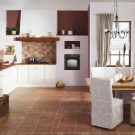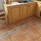 - Кото плочки. Покриването на Cotto принадлежи към стила на страната. Тази настилка е изключително в теракотови тонове. Тези плочки често се поставят на кухненския под, въпреки че се нуждаят от допълнително кола маска след монтажа..