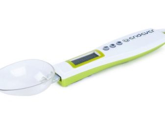 Много интересен и необичаен модел на везни, направен под формата на обикновена лъжица. С негова помощ можете лесно да претегляте всякакви течни и насипни продукти, които изискват най -малкото количество за готвене..