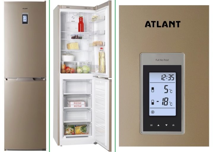 - Атлант – беларуска машина. Височината му е 1,5 м, ширината 63 см, а теглото му е над 60 кг. Капацитетът на хладилника е по -голям от италианския модел и е 263 литра. Обем на фризера – 53 л, и хладилното отделение – 202 л.