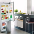 - Bosch – производител на хладилници с две отделения. Средната им височина е 1,6 м, ширината е 60 см. Общият обем може да бъде средно 300 литра. Вътре има 3 рафта и просторен контейнер. На вратата има 4 кошници. Фризерът може да бъде разположен както отдолу, така и отгоре. Трябва да го размразите ръчно.