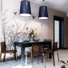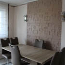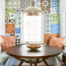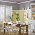 Вертикалната комбинация е подходяща и за зониране на стая, когато е необходимо да се отдели кухнята от зоната за отдих в студиото или да се подчертае трапезарията. Изглежда красиво и има много възможности за дизайн. Например, подчертаване на трапезарията с две ивици или създаване на една широка лента за нея. Използването на контрастни вертикални ивици в присъствието на колони или вертикални вентилационни кутии изглежда грандиозно.