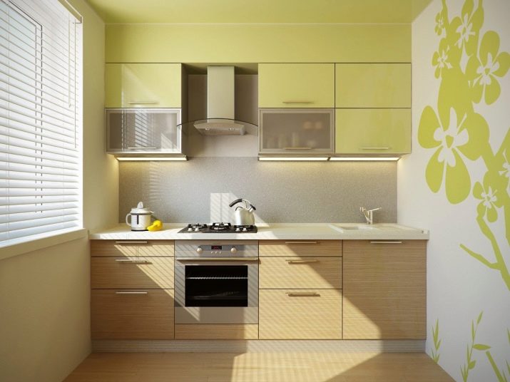 Вертикалната комбинация е много добър начин за изглаждане на геометричните несъвършенства на кухнята. Той най-успешно решава проблема с ниските тавани и визуалното разширяване на пространството в кухненския молив..