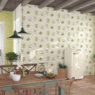 - Много успешен вариант за кухнята във всяко отношение – стъклени тапети. Те са устойчиви на температури, влажност, замърсявания, мухъл и огнеупорни. Лесно се лепят и измиват, не избледняват и не губят качествата си дълго време. Но като имат такива предимства, те имат висока цена. Стъклените влакна могат да бъдат боядисани в други цветове, без да се нарушава тяхната текстура и здравина, като по този начин цената им може да се изплати с по -дълъг период на експлоатация..