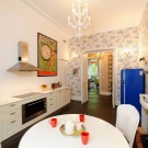 - Винил. Красива, ярка, практична. В случай на замърсяване, такъв тапет може да се избърше, а ако може да се пере, тогава може да се измие. Недостатъкът им е химическият им произход. Те не дишат, освен това могат да отделят не много полезни вещества. Но за кухня, където постоянната вентилация е просто необходима, лепенето на такива тапети е напълно приемливо..