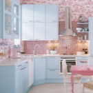 - Специално за начинаещите дизайнери е важно първо да изготвите план, да изберете текстурата на тапета, като вземете предвид състоянието на стените, кухненската зона, мебелите.