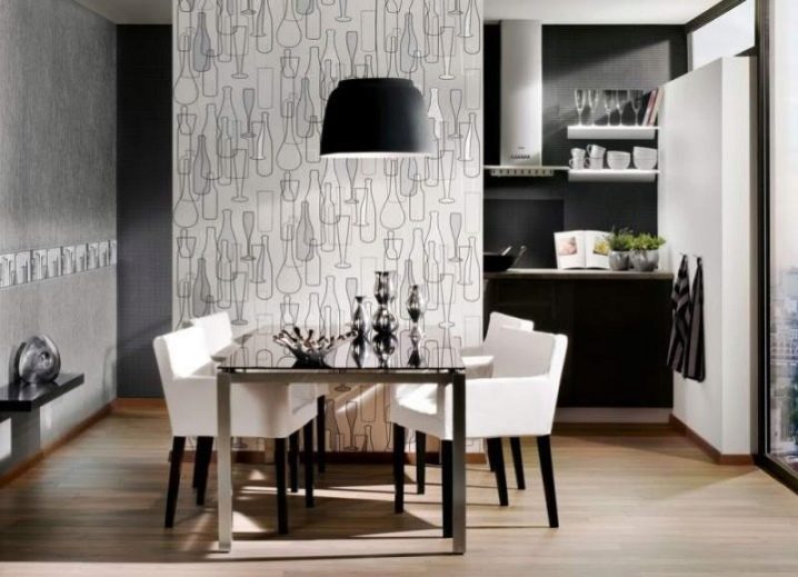 Но комбинацията, въпреки че дава възможност да се покаже въображение, има определени правила, в противен случай вместо креативен дизайн можете да получите напълно разглезена кухня, която само предизвиква раздразнение. Нека се опитаме да решим на какво трябва да обърнете внимание и как да се ориентирате в обширна селекция от тапети. Какъв дизайн е най -подходящ за малки кухни, ниски тавани, студийни стаи.