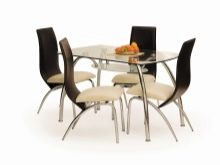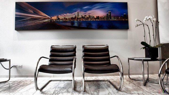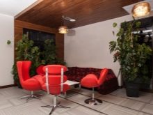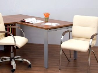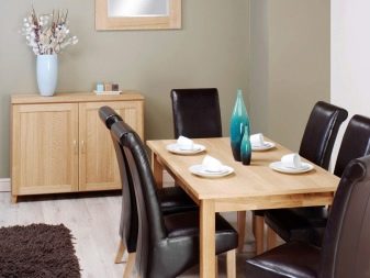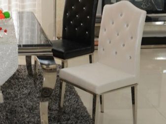 Когато избирате кожени изделия, трябва да дадете предпочитание прости геометрични фигури. Разнообразието от цветови схеми ви позволява да изберете цвят в зависимост от личните предпочитания и избрания интериор на стаята. Кожените столове могат да бъдат представени в бежово, кремаво, тъмно кафяво.