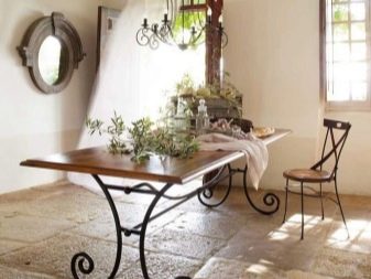 Преплитащите се метални крака придават на масите особен лукс. Те могат да запълнят почти цялото или част от пространството под него, да бъдат под формата на геометрична фигура или да изобразяват листата на растение..