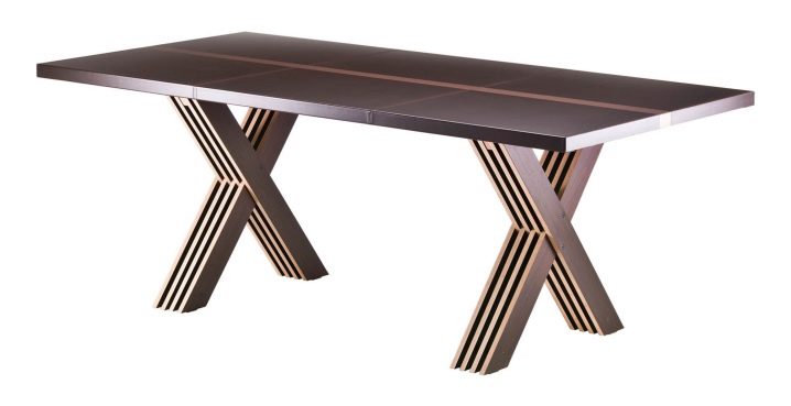 Екстравагантни модели, които се вписват добре в съвременния интериор, са кухненските маси с Х-образни крака, изработени от греди с квадратно сечение. Краката, наклонени под ъгъл и сливащи се в точка в средата, изглеждат най -хармонично.