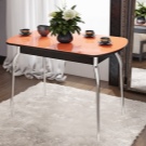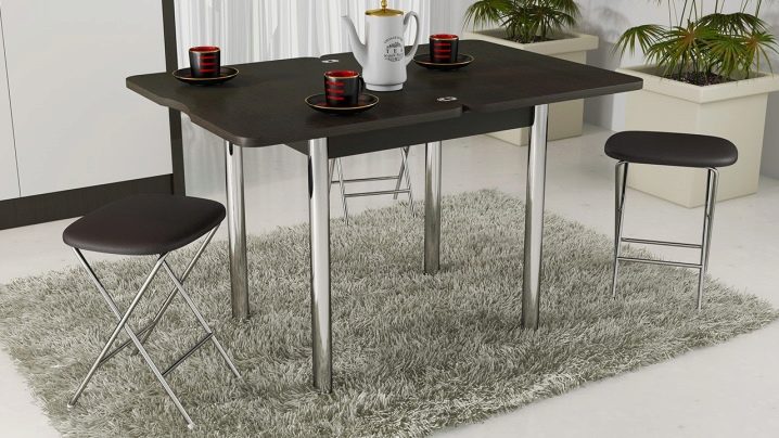 Най-често срещаната версия на крака за модерни кухненски маси са хромирани крака, идеално в хармония с ретро, минимализъм и хай-тек стил. Ако търсите най -новите дизайнерски разработки на маси и опори за тях, можете да намерите доста необичаен дизайн. Например, опорите могат да бъдат твърде широки или, обратно, изключително стеснени. Често формата на опорите във въображението на дизайнера изведнъж става извита или украсена с художествена декорация..