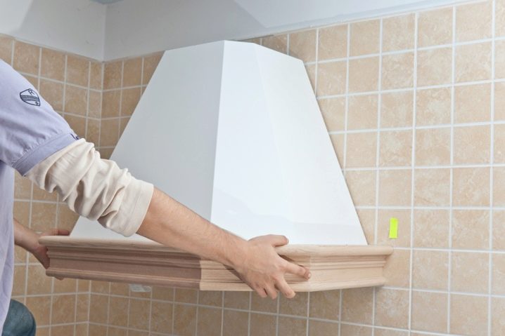 След като сте сглобили всички основни елементи на аспиратора: долната конструкция, решетката за абсорбатора и електродвигателя – направете рамка от ламелите и я фиксирайте върху основата. Изберете типа рамка въз основа на общия стил на кухнята и личните предпочитания. Основното е, че в него може да се монтира въздуховод. Покрийте страничните стени на купола с шперплат или друг лек огнеупорен материал. След като лепилото изсъхне добре, шлайфайте повърхността, след което можете да започнете да декорирате продукта. След това можете да продължите с инсталацията: прикрепете готовия аспиратор към стената и поставете въздухопровода в него.