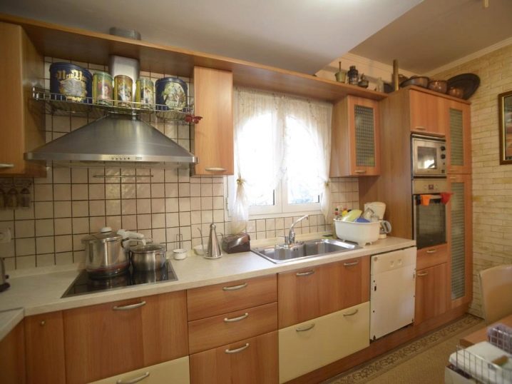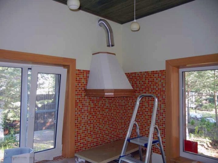 По -добре е да използвате купол с абсорбатор в голяма кухня в частна къща, където допълнително функционират отоплителни устройства. В този случай въздуховодът може да се изведе през стената..