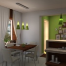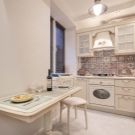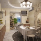 В кухнята можете също да опитате да боядисвате стените с декоративна мазилка. Тя ви позволява да създадете имитация на плътна каменна структура.