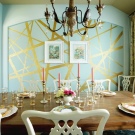 Ако решите да създадете интересни модели, използвайки боя, тогава текстурираната боя или вашето въображение ще ви дойдат на помощ. Стените могат да бъдат украсени с различни геометрични форми с помощта на обикновена боя. За да украсите стената с квадрати или триъгълници с различни цветове, можете просто да маркирате границите с тиксо и да нарисувате необходимите части от стената. Тази лента може лесно да бъде премахната, без да оставя никакви остатъци..
