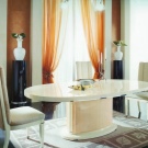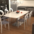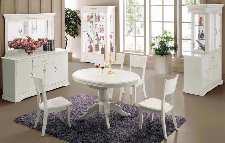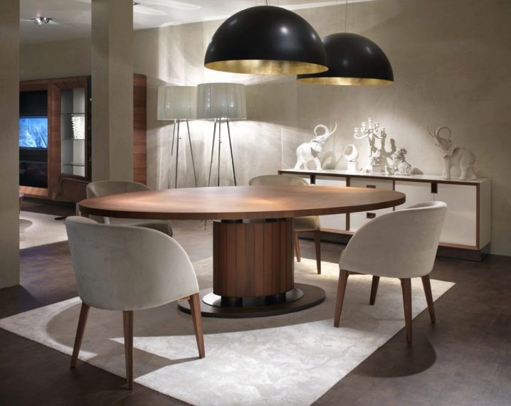 Полукръгли, леко удължени форми на мебели имат свой собствен лаконизъм. Подходящи са за светли, големи кухни, изглаждат визуалните неравности и внасят дял спокойствие в интериорния дизайн. Плот без ъгли понякога е тежък и трудно се пренарежда. Светлите и кремави нюанси на тези дизайни са най -подходящи за малки трапезарии, докато тъмните овални форми ще изглеждат хармонично в голямо пространство. Бяла маса, независимо от какъв материал е, ще освежи цялостния стил.