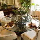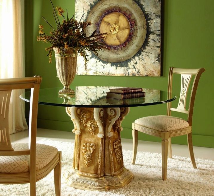 Масите от кристална основа или стъкло, като правило, са с кръгла форма, имат основа от метал или дърво. Такъв материал придава изтънченост, създава въздух на пространството..