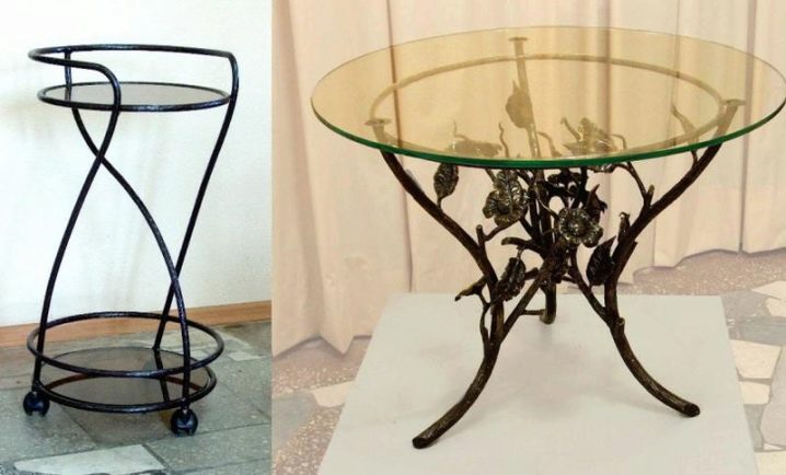 Ако сте привлечени от метала, харесвате строгостта на линиите и естетиката на студените нюанси, тогава разгледайте по -отблизо моделите от стъкло с включване на дърво. В тази версия кракът може да се състои от няколко моделирани включвания, преплетени в един възел и свързани чрез няколко прегради. Такива модели изглеждат много стилни..