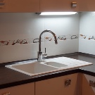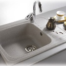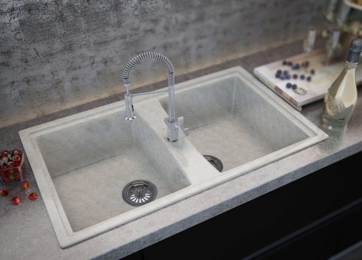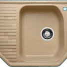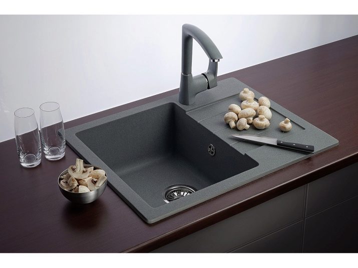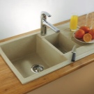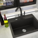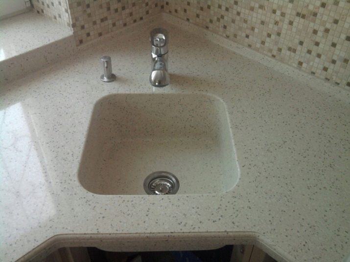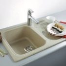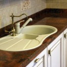 Ако вашето дизайнерско решение предполага единството на мивката и съседния плот, тогава си струва да се съсредоточите върху версията на трохите – по този начин ще спестите много, защото изкуствено създаденият материал ще бъде по -лесен за вписване в дизайна. Намирането на правилния размер и цвят на естествен камък може да бъде предизвикателство и скъпо..