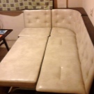 Ъгловите дивани с вградена зона за спане работят добре за малки кухни. Такива модели рационално ограничават площта, правят уютна стая за спане и семейни вечери от обикновена кухня. Препоръчително е да инсталирате мека мебел от този тип във всеки от свободните ъгли. Това създава просторна трапезария..